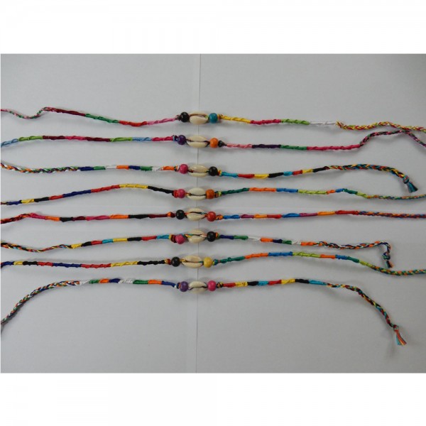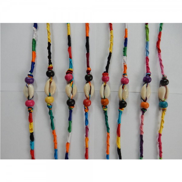 This product material is silk and including 2 wood beads and natural shell.